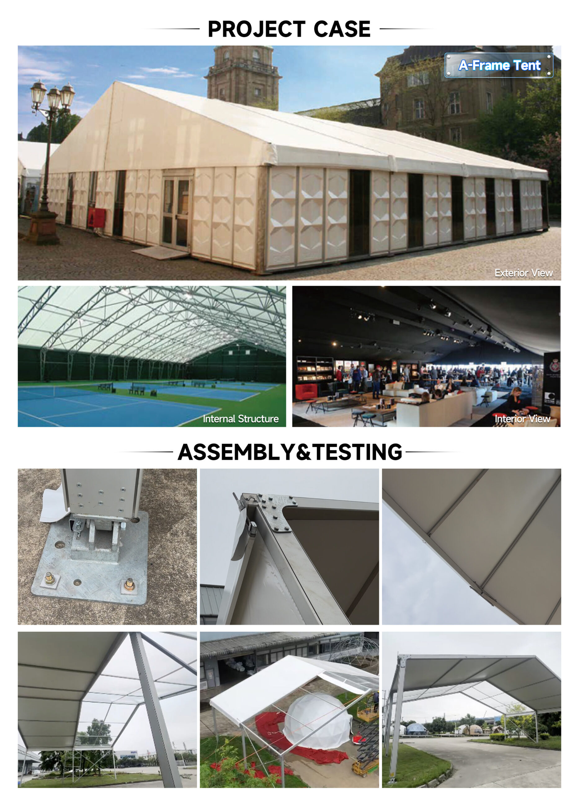 • Superior Safety & Durability: Safety is our priority. The PVC fabric is fire-retardant (SGS DIN 4102-1 B1 certified), providing a secure environment for all attendees. This durable material, combined with aerospace-grade 6061/T6 aluminum, ensures our tents are built to last, standing strong through years of use.